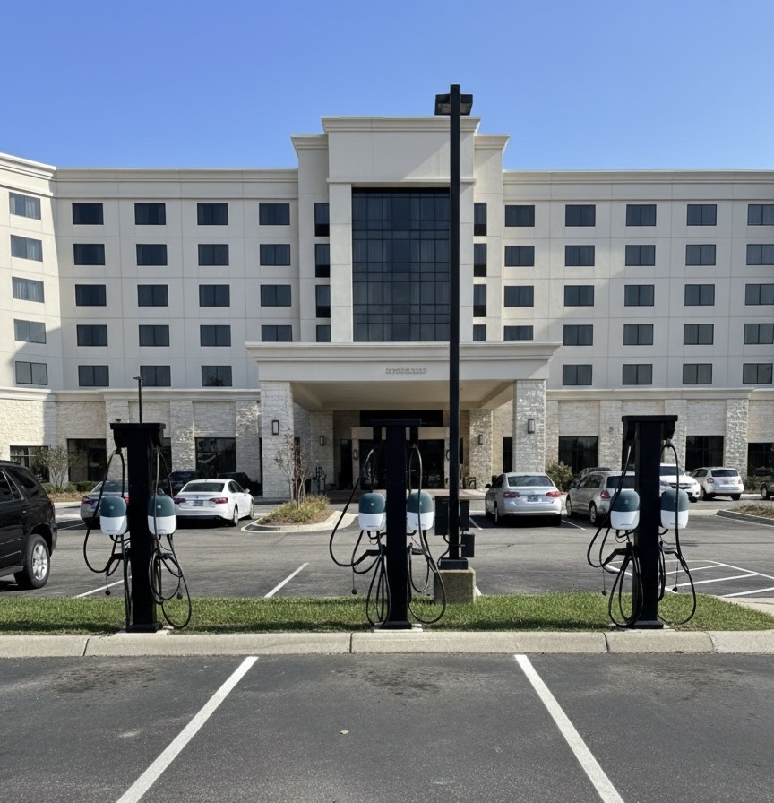 EV charging stations increase foot traffic and direct revenue, boost property values, lower energy costs with smart load management, and qualify for federal tax credits.